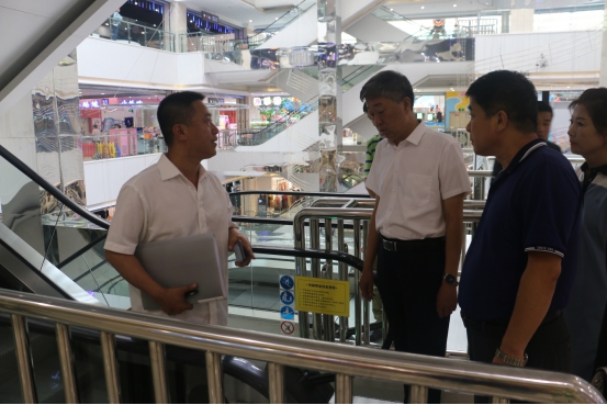 8月8日,白山市市场监督管理局局长陈杰,分管局长王相田,市场稽查专员赵廉声带领特种设备安全监察执法人员到广泽国际购物中心检查特种设备安全管理情况。