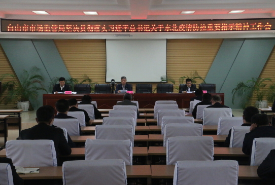 梁世学副局长随后传达了我局《关于疫情防控重点工作责任分解的通知》和《疫情防控社会面管控工作分工方案》要求。市局成立由局长任组长、领导班子成员为副组长、市局相关科室、分局(支队)负责人为成员的疫情防控工作领导小组,下设12个工作组,立足职能,细化责任,推动各项防控措施落实落细落到位。市局将派出五个督导组,对主城区药店开展严格督导检查,配合有关部门对餐饮、商超、农贸市场等经营主体落实疫情防控社会面管控工作进行督导,突出督导人员进出佩戴口罩、测量体温、扫码等社会面管控措施落实情况。